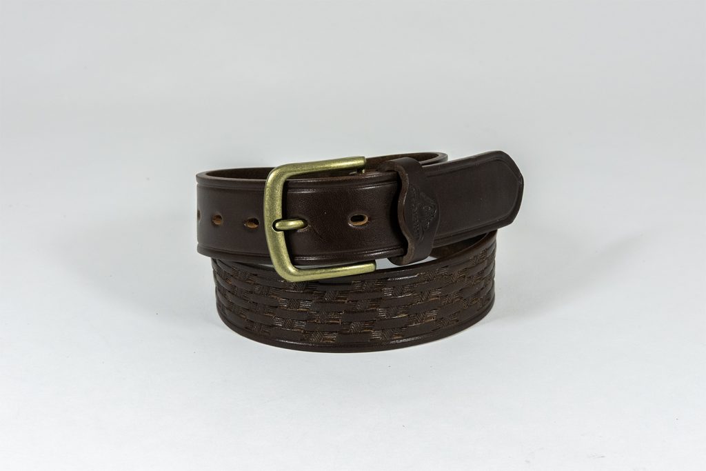 - Tooled with basket weave pattern